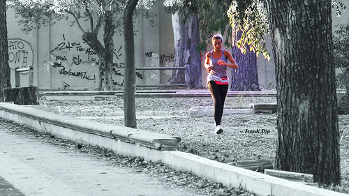 …e mentre correvo, saltando le radici degli alberi, notai che seduto ad una panchina c’era il solito ragazzo con quaderno e penna. Era questa la cosa che me lo fece saltare in faccia: il fatto che non stesse correndo, ma che stesse perdendo tempo così. Tutti i giorni, da una settimana, almeno.