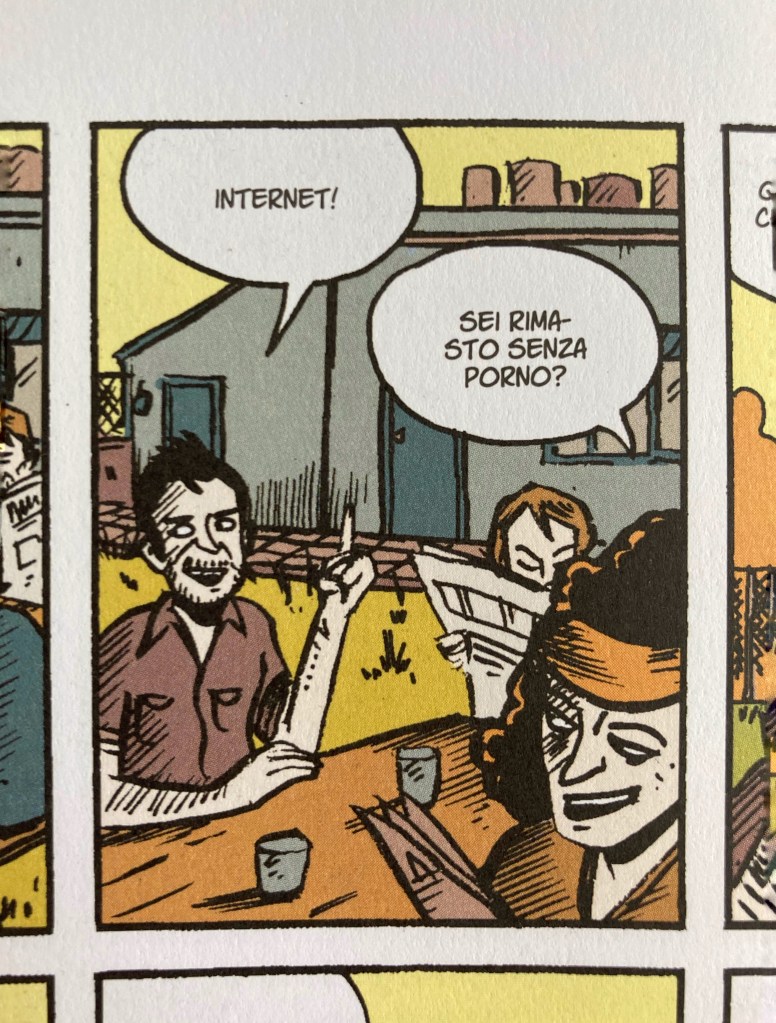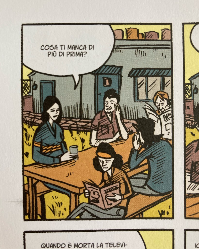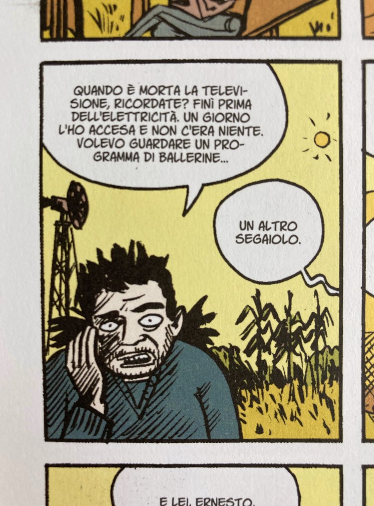 Siamo nel 2030 e la diffusione di un misterioso morbo, chiamato Tristezza, ha contaminato l’intero pianeta. Lo scenario è da apocalisse: città abbandonate, niente internet, niente elettricità, pochi animali da cortile sopravvissuti, nessuna struttura statale a governare, a controllare, a proteggere i sopravvissuti. L’infezione colpisce le persone che abbandonano qualsiasi attività lasciandosi morire nello sconforto, nell’angoscia, nella disperazione. I superstiti devono arrangiarsi: raccogliere l’acqua, preparare conserve per i soliti cibi, inventarsi una scuola primitiva e persino inventarsi l’intrattenimento. In un mondo senza più internet anche trovare delle riviste vecchie può regalare un guizzo di vita. Chi è nato prima del web sa di che sto parlando. Vi ricordate? Quante etichette di shampoo imparate a memoria al cesso, quanti vecchi numeri di Cioè, Novella 2000 o Postalmarket (a proposito di graphic novel)!