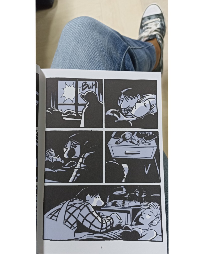 Il mestiere di Gula, quasi venticinque anni a fare tavole per Disney e Panini, adattamenti a fumetti della serie Toy Story e altri lavori francesi come Othon & Laiton e Wondercity (ho cercato in rete e c’è molto altro ancora), è in queste 300 pagine da imbracciare con soddisfazione. Dialoghi ridotti all’osso e silenzi comprimari, tratti puliti ed essenziali che mettono in gioco il lettore, trasportandolo nell’intricato intreccio della trama, tra scarti improvvisi e previsioni disattese.