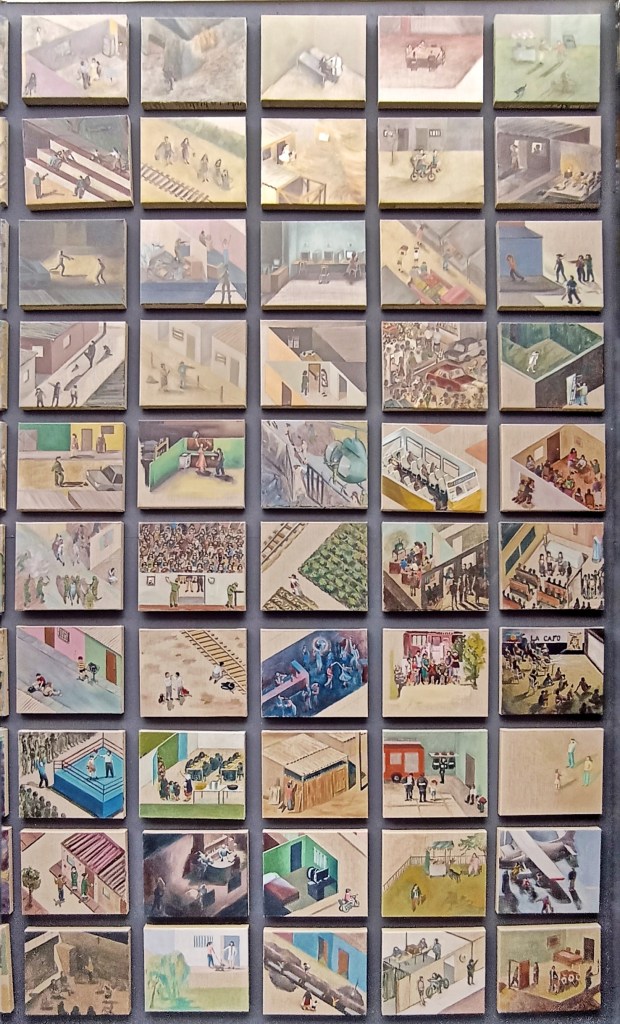 Il Cile presenta un’installazione curiosa, di cui ho già parlato qui, su Instagram: una camera delle meraviglie composta raccogliendo le testimonianze di vita di cinquecento tra gli abitanti del quartiere José Maria Caro di Santiago del Cile, hanno provato a rispondere alla domanda: “how will we live togheter?”, come vivremo insieme? Il José Maria Caro è un esempio di agglomerato urbano creato in tempi brevi per soddisfare l’urgenza abitativa di quanti tra gli anni ’50 e i ’60 del ‘900 (quasi centomila nuovi residenti) abbandonavano le aree rurali per invadere la capitale. Una vera sfida, quella della convivenza, a cui occorreva dare una risposta concreta. E ora? Conflitti, desertificazione, terreni incoltivabili, innalzamento del livello dei mari… Il tema è estremamente attuale: che risposte abbiamo (e avremo) per le migrazioni di massa? È indispensabile, come dicono i curatori “promuovere architetture, cittadini, ricordi, desideri e spazi di una vita integrata, come conseguenza di un inventario di una città biografica”. Senza perdere di vista un aspetto fondamentale, e ce lo sottolinea la rappresentazione di questi fotogrammi di vita quotidiana: che stiamo parlando di persone, non di numeri.