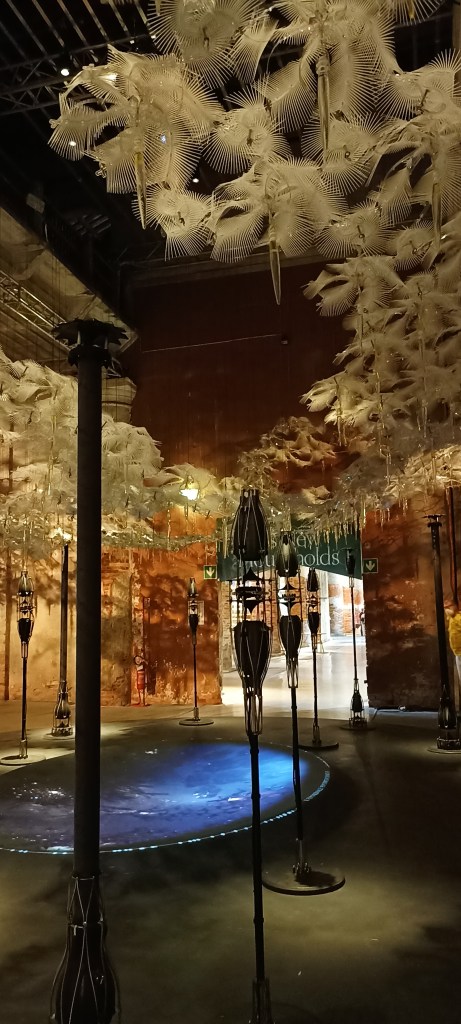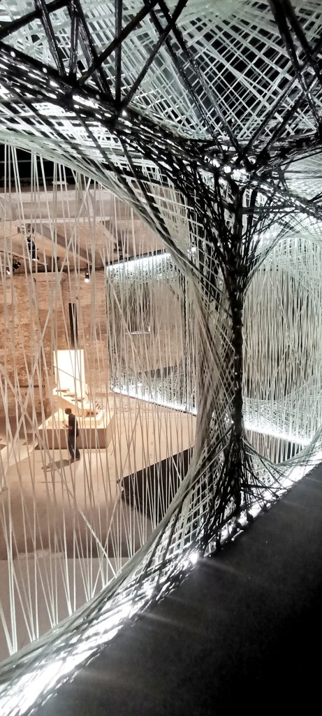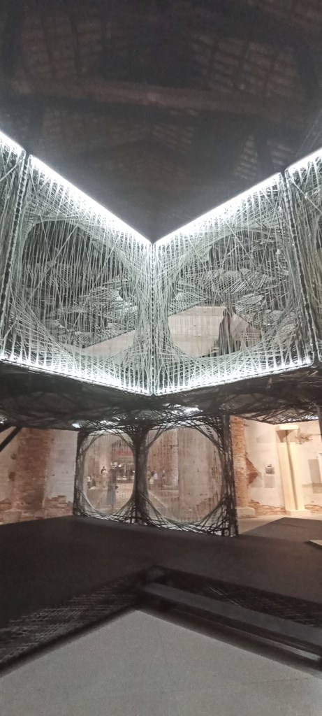Divisa tra Arsenale e Giardini (più altre appendici a Forte Marghera o in centro a Venezia, di cui però, purtroppo, non ho fatto esperienza, la Mostra di quest’anno è stata, a mio parere, appena sottotono rispetto al dovuto. Fa tristezza vedere edifici chiusi, saracinesche abbassate o sale deserte, complice l’incertezza e le limitazioni dovute al Covid e la crisi economica in genere MA rimane un momento di avanguardia, di ricerca, di confronto tra visioni intellettuali olistiche da cui vale la pena prendere spunto per vivere, per vivere bene insieme.