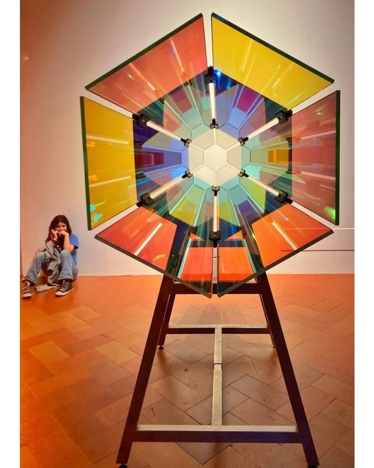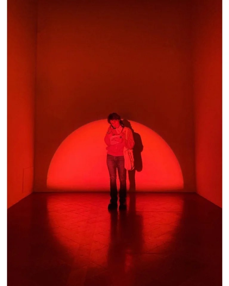 Se questo periodo col suo crepuscolo e le giornate accorciate mi (di)strugge particolarmente, può essere l’arte della luce sublime consolazione? Intanto si sta come d’autunno, trafitti da un raggio di sole (filtrato da lampade a scarica ai vapori di sodio a bassa pressione che emettono luce gialla monocromatica da 1800K).