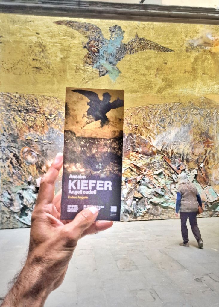 Amiche e amici, come state? Io bene, ma in questo periodo di svolta post-elettorale europea con scappellamento a destra, mi è venuto in mente Anselm Kiefer, uno dei più influenti artisti viventi, impegnato oggi a dialogare con il magnifico contenitore cinquecentesco di Palazzo Strozzi.