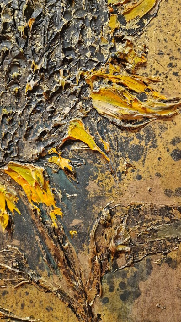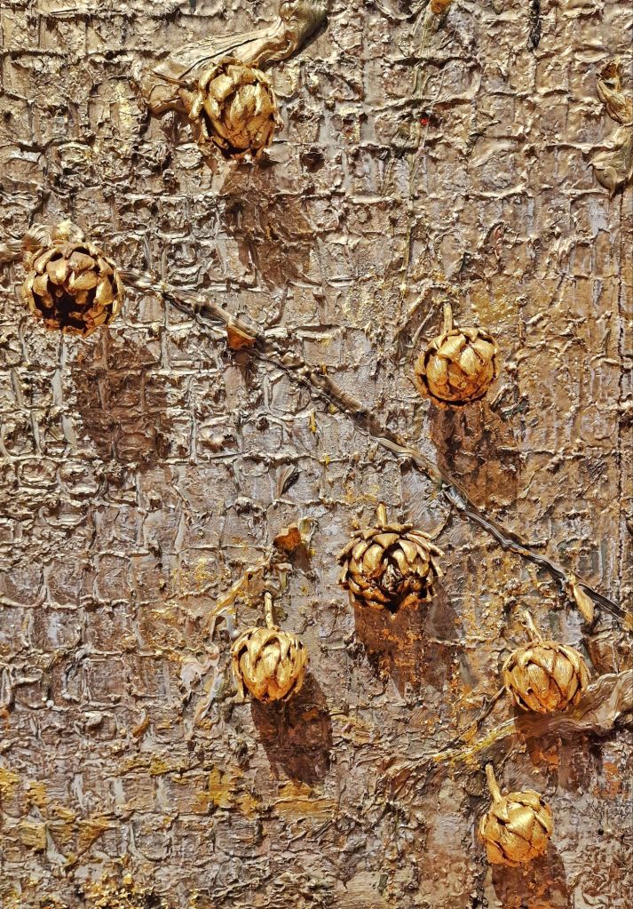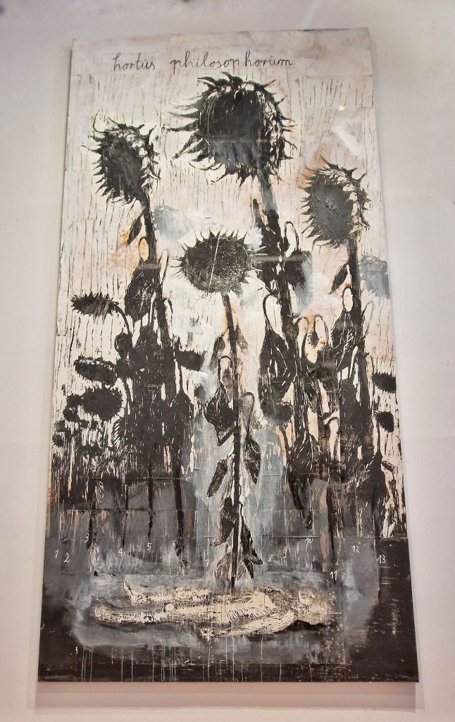 La tecnica di Kiefer è alchimistica, complessa, multi-materica, mescola cere, pitture, metalli, ossidi, stoffe, carciofi, semi… le opere spesso vengono riviste, rifatte, maltrattate, colpite, bruciate con gli acidi e con il fuoco, in un interminabile processo di rigenerazione dell’arte.