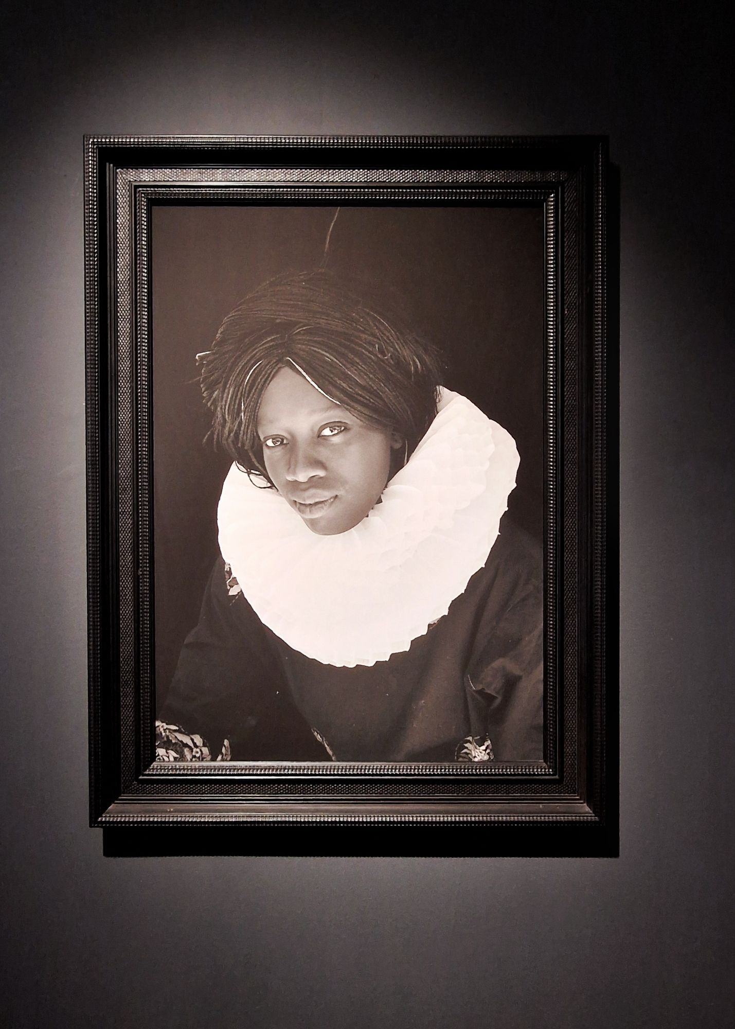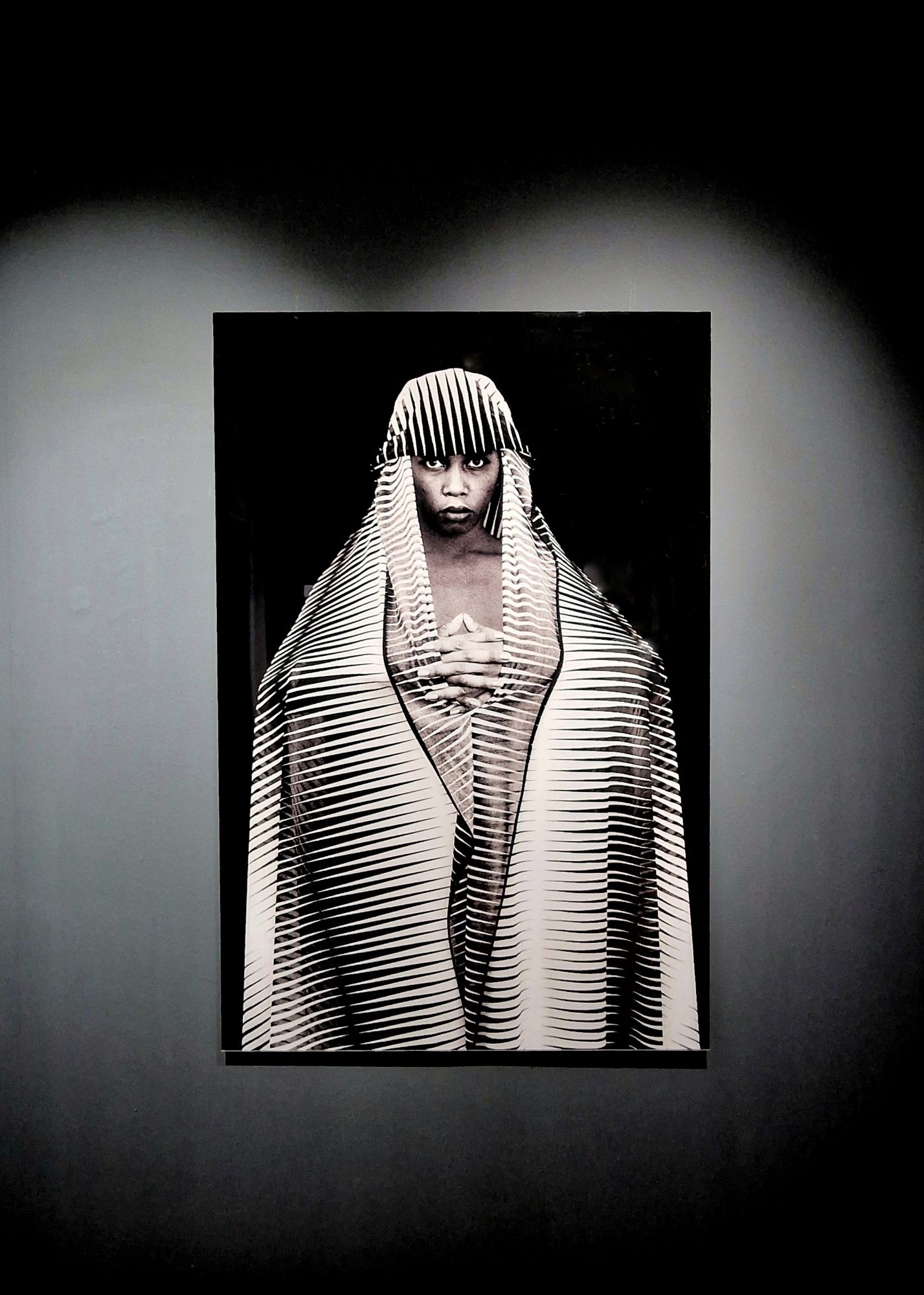 Uno dei momenti più potenti della mostra è l’opera Résistance. Il ritratto di una donna con un turbante avvolto intorno alla testa, gli occhi che fissano l’obiettivo con un’intensità disarmante. Qui, la resistenza non è soltanto una parola, ma una postura. La donna non ha bisogno di parlare: il suo sguardo è un grido di lotta e orgoglio. Le pieghe del turbante sembrano scolpire un passato che non ha mai smesso di farsi sentire.