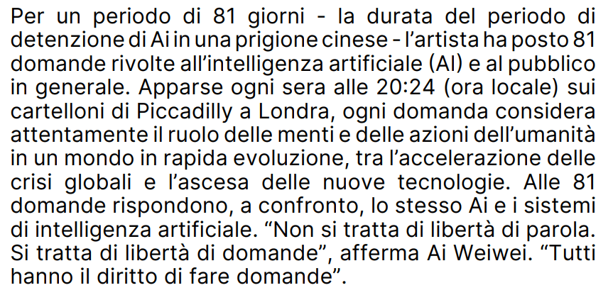 Sitografia: Ai Weiwei. Who am I? – Opera Laboratori, Ai Weiwei. Who am I | Cultura Bologna, Ai Weiwei. Who am I? – Bologna Welcome