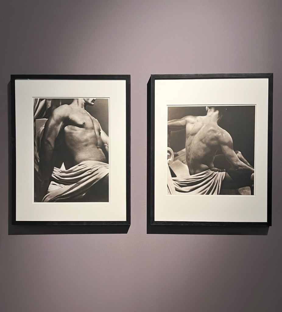 3. Lee Miller in vesti classiche (1930 ca.) – Lee, che sarà testimone dell’orrore di Dachau anni dopo, è qui una musa inquietante, vestita da greca, con una compostezza che grida eternità. È una delle foto più potenti della mostra, perché unisce la delicatezza formale di Huene con la forza interiore di una donna che saprà cosa vuol dire guardare negli occhi l’abisso.