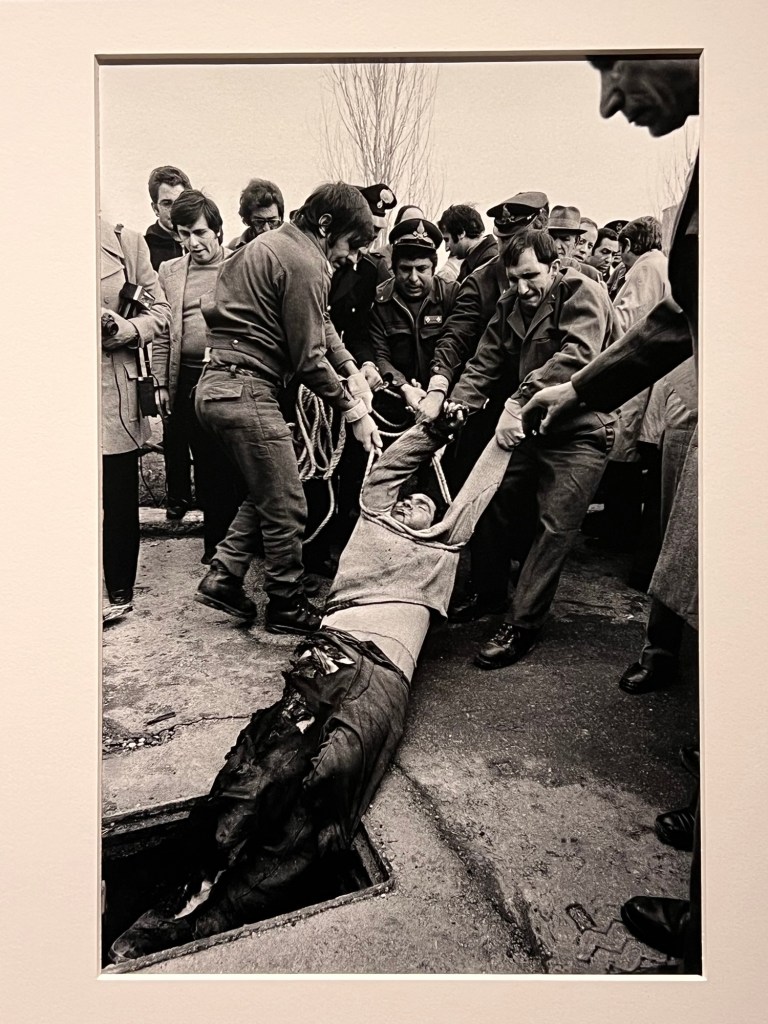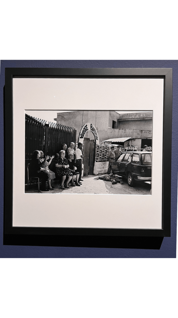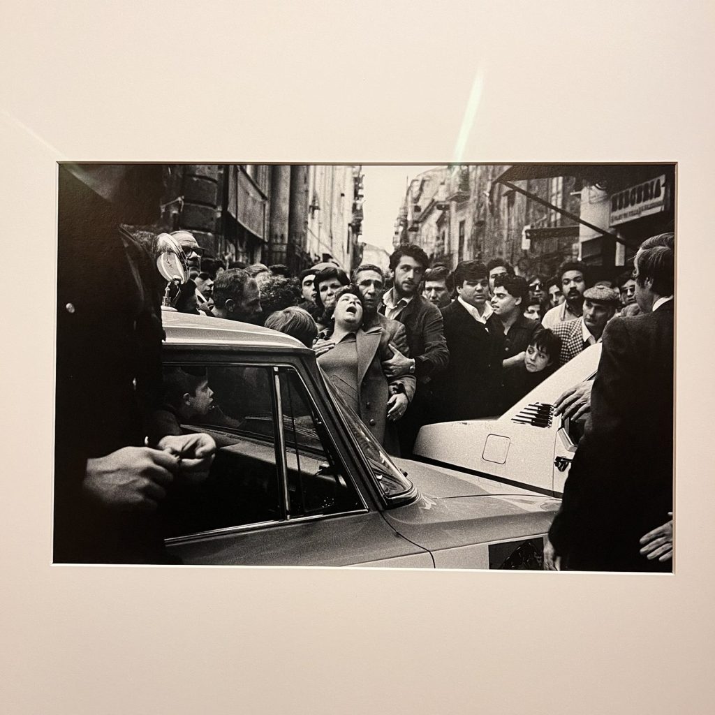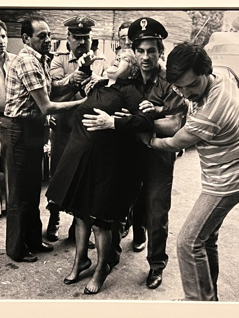Qui prende forma la parte più conosciuta del suo archivio: la documentazione delle guerre di mafia, degli omicidi, dei processi, degli arresti. Le fotografie esposte in questa sezione colpiscono ancora oggi per la loro frontalità. Battaglia fotografa da vicino, senza cercare inquadrature spettacolari o soluzioni formali elaborate. L’urgenza è quella di registrare i fatti e di renderli visibili, in un momento in cui raccontare certe storie significava esporsi in prima persona. Le fotografie della violenza mafiosa, cuore inevitabile della mostra, non concedono allo spettatore il conforto della spettacolarizzazione. I cadaveri sull’asfalto, i volti irrigiditi dalla morte, le scene del crimine colte con una vicinanza quasi insostenibile non sono immagini rubate, ma immagini assunte. Battaglia non guarda dall’alto, non cerca l’effetto, non costruisce icone. Sta. E questo stare, così ostinato, trasforma la cronaca in memoria condivisa. Quelle fotografie non spiegano, non commentano: testimoniano. E nel farlo chiedono a chi guarda di assumersi una parte di responsabilità.