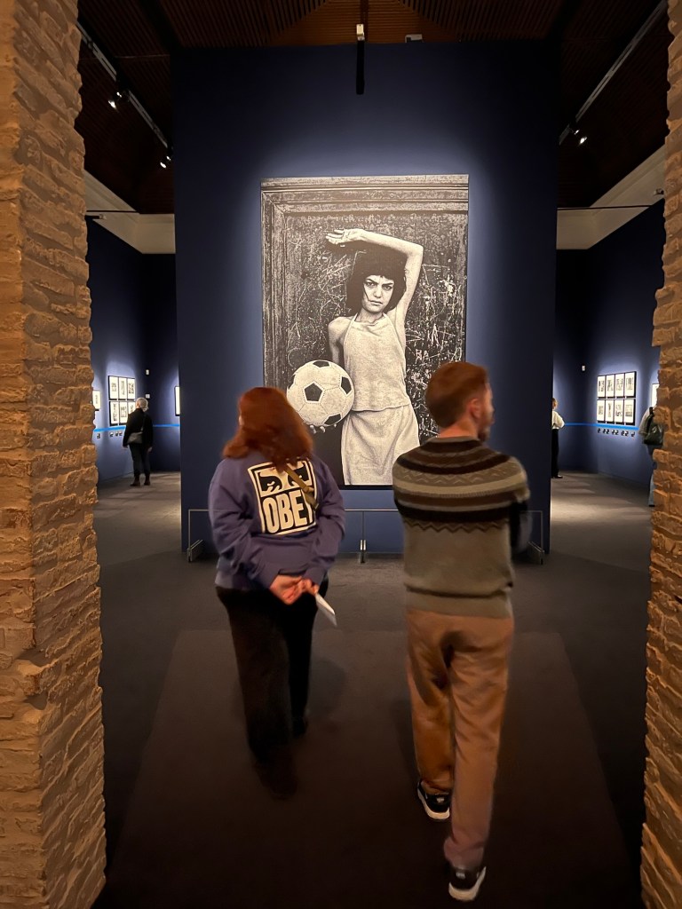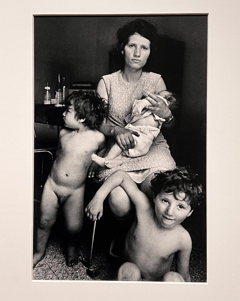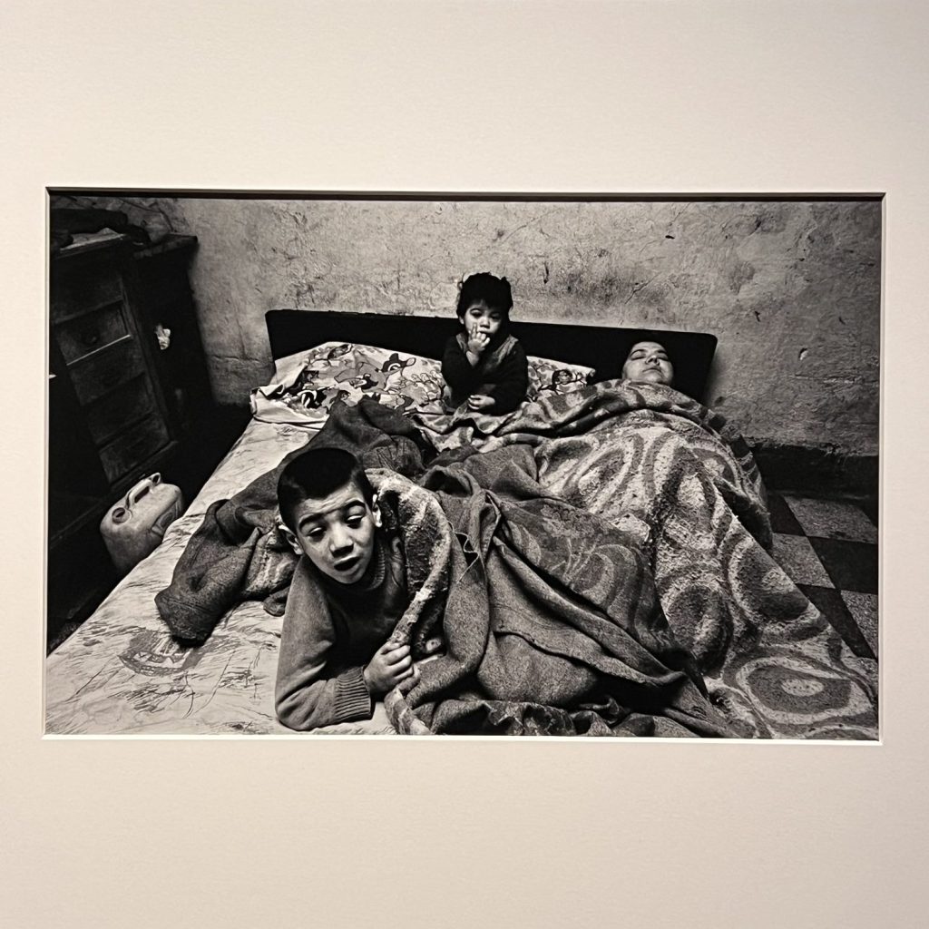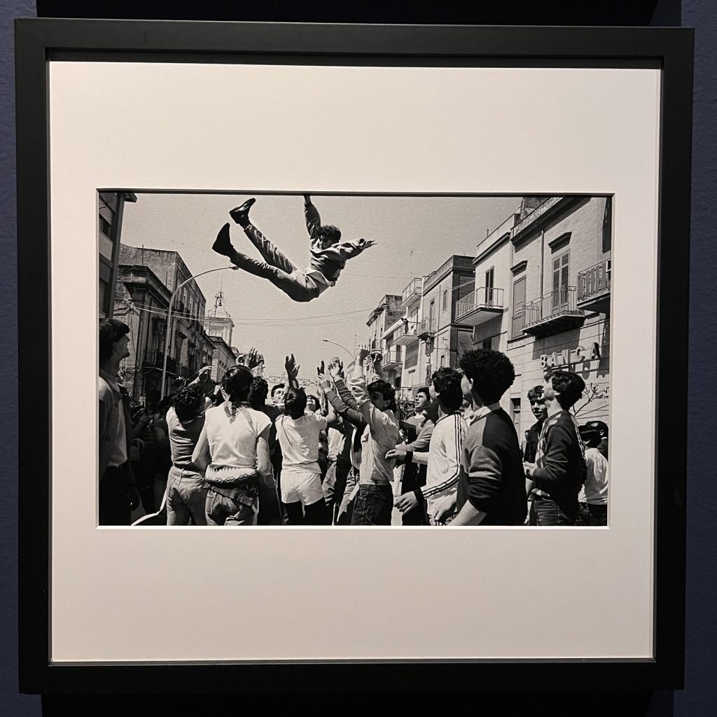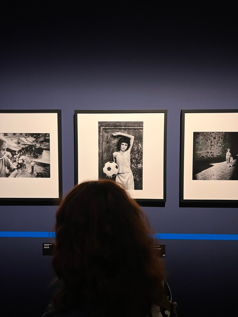 Tra gli scatti più iconici — e che probabilmente trovi alla mostra — c’è quello di una bambina nel quartiere della Cala a Palermo, intenta a giocare con un pallone. Quell’immagine è molto più di un gioco: è un simbolo di innocenza in mezzo alla miseria, di un futuro sospeso tra speranza e ombra. La foto, nitida e senza artifici, dice di una città dove anche i bambini diventano leggenda se guardati negli occhi. Nel mezzo della mostra è stata allestita una sala cinema in cui viene proiettato un documentario molto bello, emozionante, con la diretta testimonianza dell’artista e reporter. Lei racconta che a un certo punto rimaneva incantata, bloccata, incatenata allo sguardo di certe bambine. Non riusciva a non fermarsi, e a fotografarle.