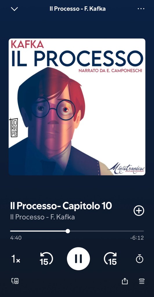 A proposito, ho appena finito di ascoltare Il Processo di Franz Kafka, letto da Edoardo Camponeschi. Premessa onesta: Il Processo lo conoscevo già. O meglio, pensavo di conoscerlo. Perché Kafka è un po’ come quella persona che a un certo punto incroci nella tua vita e dici “sì sì, l’ho capita”, salvo poi ripensarci mesi, anni dopo e scoprire che, in realtà, non avevi capito niente. O forse era lei che nel frattempo è cambiata. O forse sei cambiato tu. O forse nessuno dei due. Kafka, insomma.