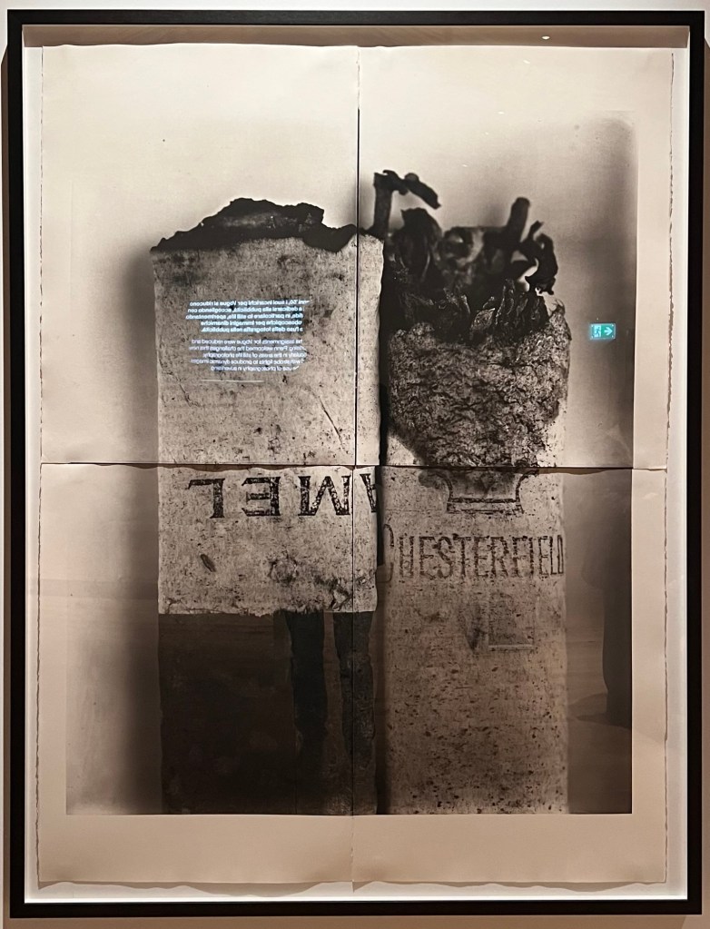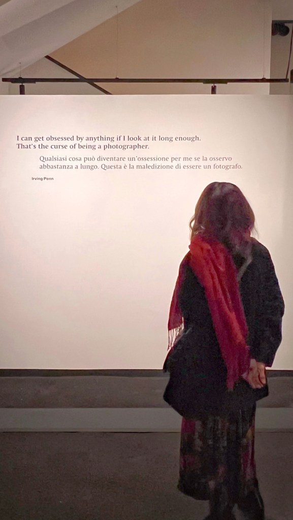 L’ultima sezione è, a mio avviso, quella in cui Penn si rivela più completamente. Dimostra grande creatività nella messa in scena di oggetti inanimati, con una costante determinazione a rimuovere il superfluo. Spesso include nelle sue realizzazioni riferimenti alla Vanitas e al memento mori dell’arte antica, che conferiscono alle sue immagini un potere e una presenza senza tempo. Mozziconi di sigarette. Gomme da masticare usate. Detriti urbani. Penn esaltava questi oggetti banali o perfino respingenti in sofisticate stampe al platino-palladio. Il granulo di pepe sul tavolo. La vespa sul limone. La formica sul formaggio. È questo che distingue un artista da un fotografo bravo: il coraggio di lasciare la formica dove sta. E la pazienza di aspettare la luce giusta.