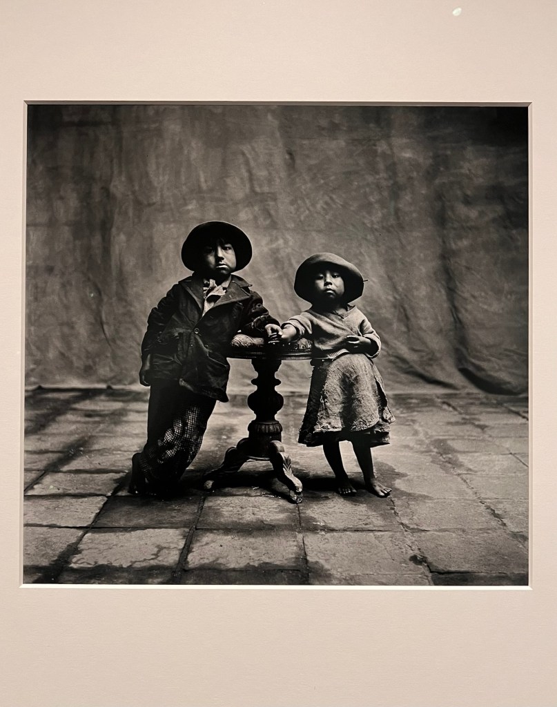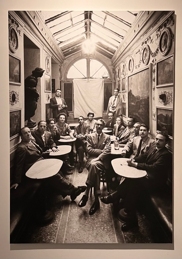 Il percorso si apre con i primi scatti realizzati a New York, poi nel sud degli Stati Uniti, poi ancora in Messico nel 1941. Nel 1945 Penn è in Europa come autista volontario di ambulanze dell’esercito americano e utilizza la sua macchina fotografica per raccogliere testimonianze visive di quel periodo travagliato. Un uomo che guidava ambulanze nella guerra e intanto fotografava. C’è qualcosa di tremendamente serio in questa sovrapposizione: salvare vite con le mani, fermarle con gli occhi. La prima foto che cattura lo sguardo, di grande formato, è la composizione realizzata al Caffè Greco, dove pittori, scultori e scrittori famosi sono seduti a semicerchio davanti ai tavolini con il piano in marmo: un gruppo di celebrità dell’ambiente culturale, pubblicata su Vogue il 5 maggio 1949. Roma entra subito, quindi. Penn era già stato qui. Ci voleva solo un ex macello per ricordarcelo.