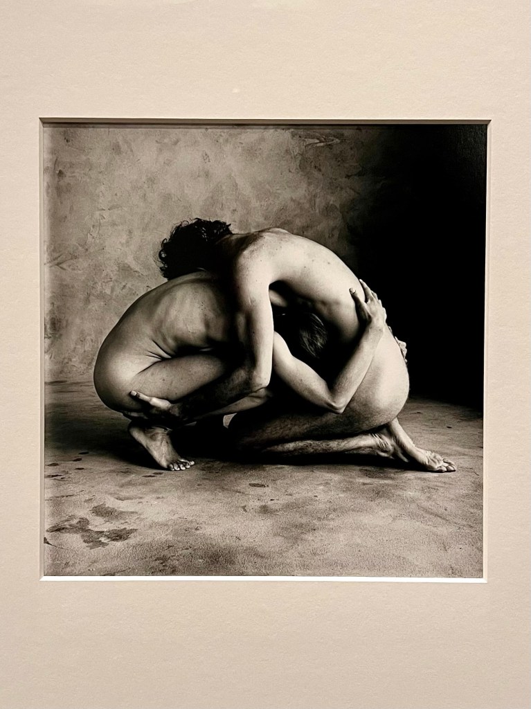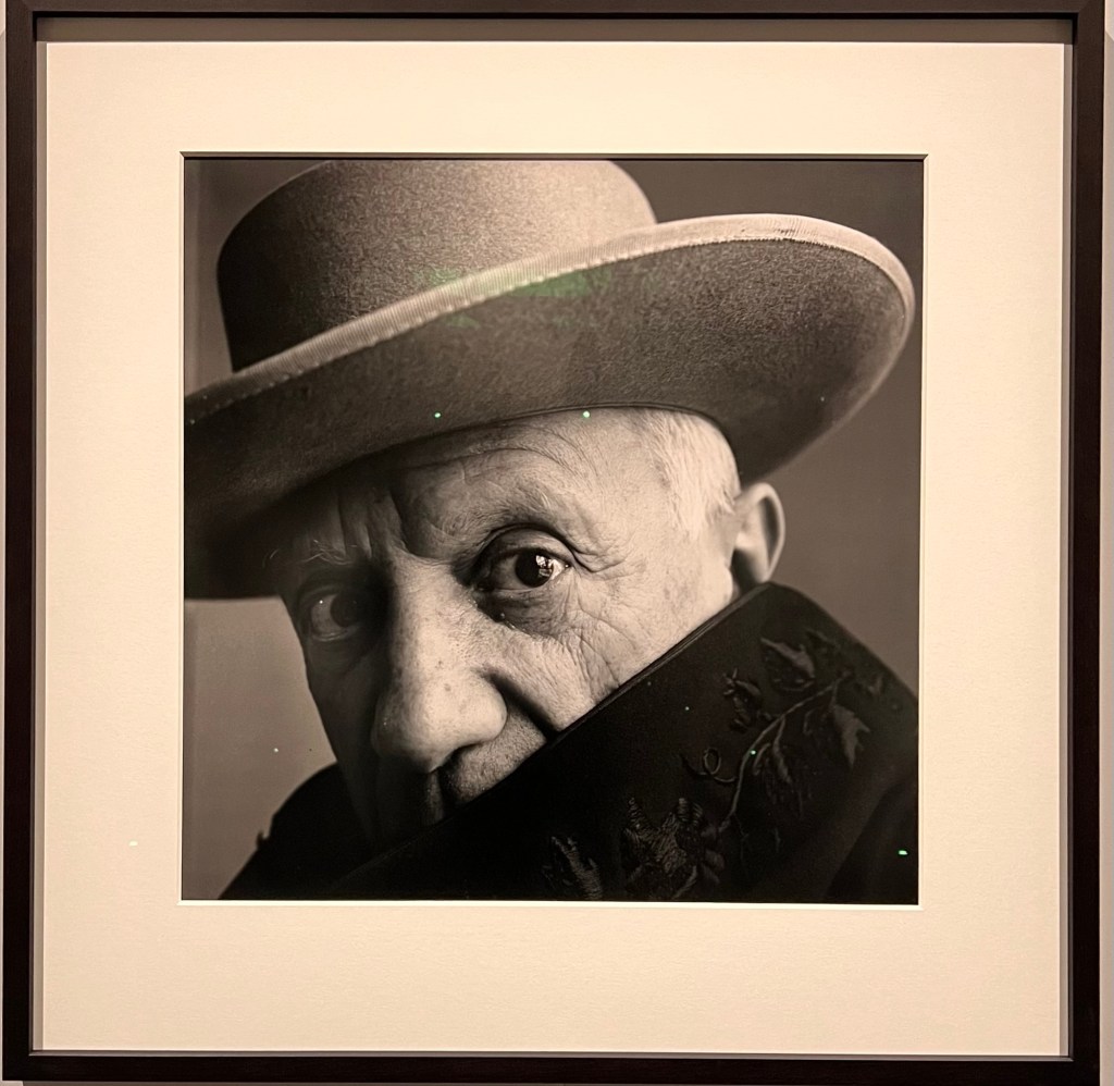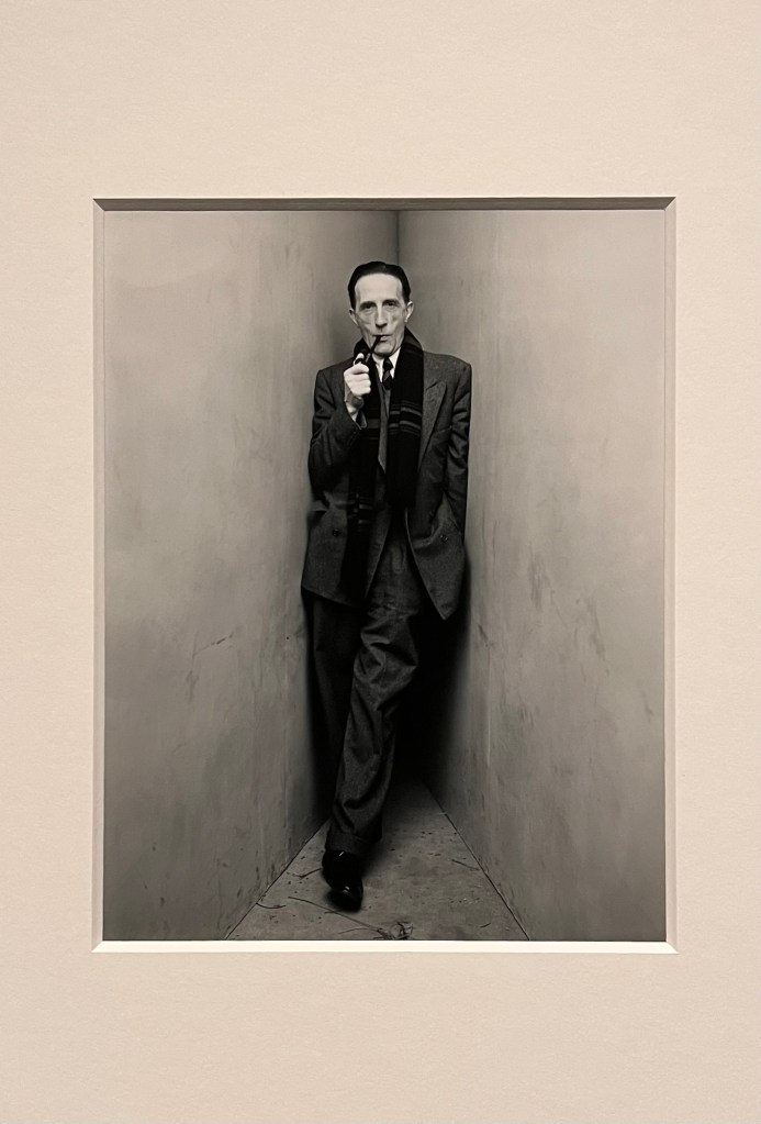 Eccoci. La terza sezione dedica ampio spazio alle celebrità, fotografate per lo più nello studio in cui Penn creava i suoi set. È qui che vive il leggendario angolo: due pannelli che formano un corridoio stretto, dove Picasso, Ingmar Bergman, Federico Fellini si trovano compressi come se Penn stesse dicendo: fuori da qui non esiste niente. Solo tu e io. Mettiti comodo, se ci riesci.