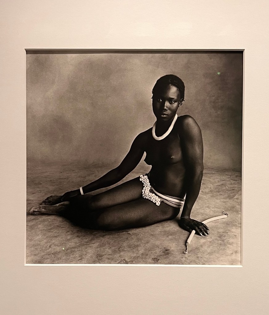 La seconda sezione è dedicata ai numerosi viaggi intrapresi per Vogue tra il 1948 e il 1971, dal Perù al Nepal, dal Camerun alla Nuova Guinea, durante i quali Penn realizzò ritratti degli indigeni immersi nella luce naturale, dopo averli isolati dal loro ambiente in uno spazio neutro. Qui si potrebbe aprire una discussione interminabile sul rapporto tra fotografia e colonialismo culturale. Penn lo sapeva benissimo, e la sua risposta era lo spazio neutro: togli il pittoresco, lascia la persona. È una posizione estetica che è anche, inevitabilmente, una posizione morale.